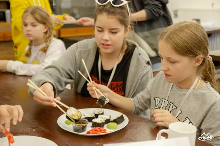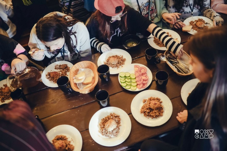 У таборі повноцінне 4-х разове харчування: сніданок, обід, вечеря і вечірній снек.