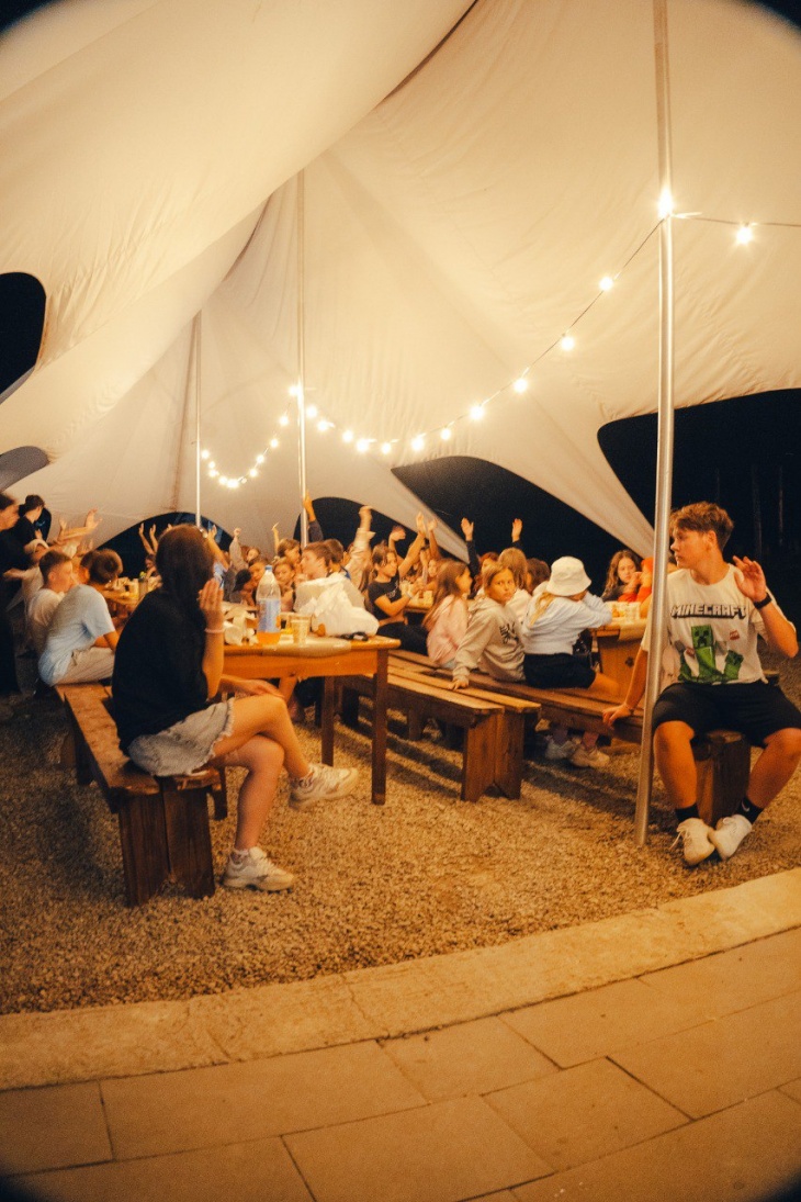 У таборі повноцінне 4-х разове харчування: сніданок, обід, вечеря і вечірній снек.