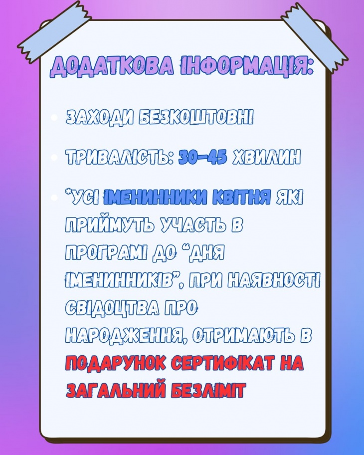 Особый бонус: все именинники апреля, которые примут участие в программе ко Дню именинника (при наличии свидетельства о рождении), получат подарок – сертификат на общий безлимит!
